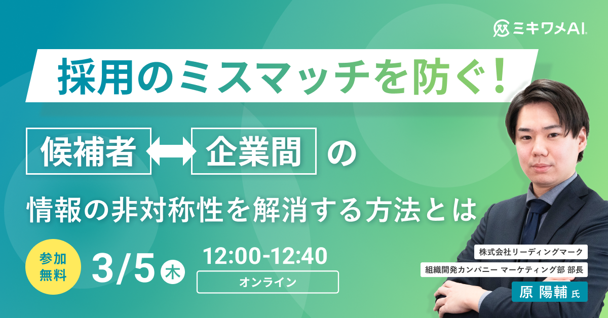 【採用のミスマッチを防ぐ!候補者⇔企業間の情報の非対称性を解消する方法とは】